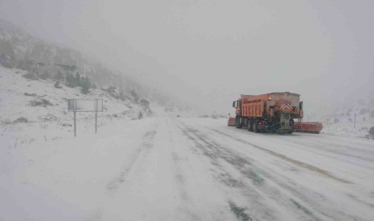 Antalya’yı Konya’ya bağlayan Akseki-Seydişehir karayolunda kar yağışı nedeniyle gece saatlerinde tırların geçişine kapatılan yol trafiğe açıldı.