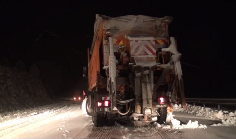 Antalya’yı Konya’ya bağlayan Akseki-Seydişehir karayolunda kar yağışı nedeniyle gece saatlerinde tırların geçişine kapatılan yol trafiğe açıldı.