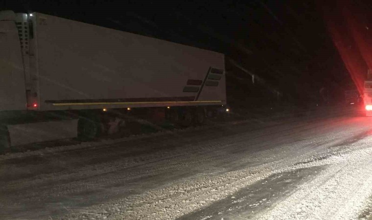 Antalya’yı Konya’ya bağlayan Akseki-Seydişehir karayolunda 1825 metre rakımlı Alacabel mevkiinde kar yağışı sebebiyle tırların geçişine izin verilmiyor.