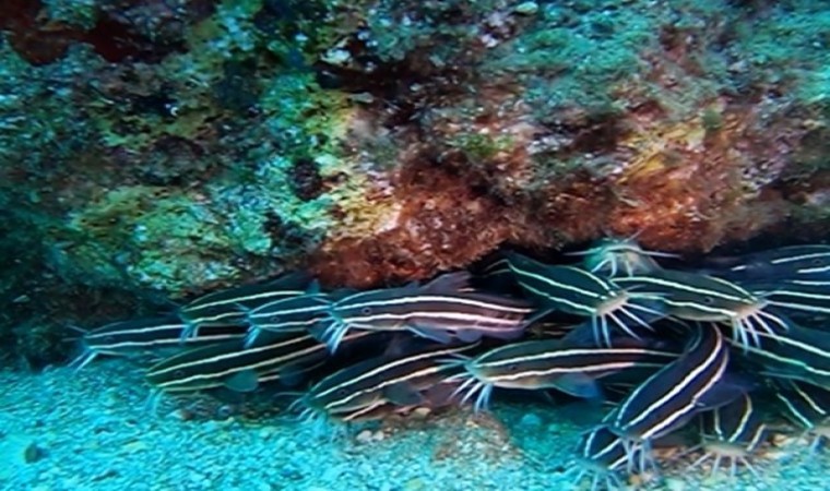Dalış sırasından birçok balık türüyle karşılaştıklarını söyleyen Kürşat Bilgin, çizgili kedi balığını ilk defa gördüklerini söyledi. Bilgin, “Yaptığımız dalışlar sırasında birçok balık görüyoruz. Bunların çoğunluğunu biliyoruz ama bazen de ilk defa gördüğümüz balıklarla karşılaşıyoruz. Karşılaştığım yine bir balık türü var. Bu balığı daha önce Türkiye sularında hiç görmemiştim ama yurt dışındaki yapmış olduğum dalışlardan dolayı biliyordum. Muhtemelen bizim kara sularımıza gelerek üremeye başladılar diye düşünüyorum. Bu balığı ‘çizgili kedi balığı’ olarak adlandırabiliriz. Aslında ebat olarak küçük bir balık, sürü halinde yaşıyor, geceleri aktif olan istilacı bir tür ve zehirli dikenleri var. Kesinlikle dokunulmaması gerekiyor. Çok acı veren zehir salgılayabiliyor” dedi.