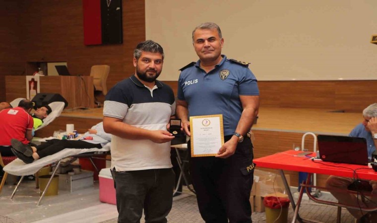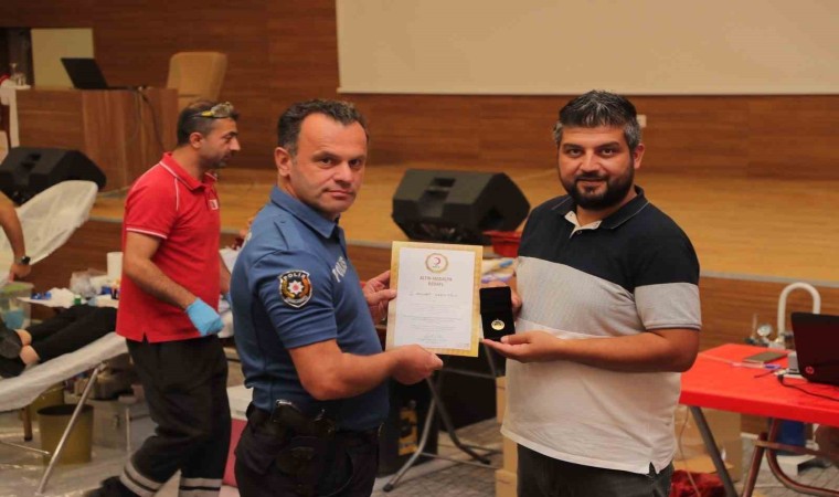 “100.Yıl-100 Kan Bağışı” kampanyasında Türk Kızılay yetkilileri tarafından 10 kez kan bağışında bulunan bir personel bronz madalya ile 35 kez kan bağışında bulunan iki personel de altın madalya ile ödüllendirildi.