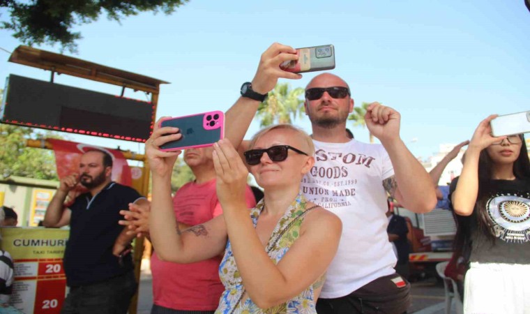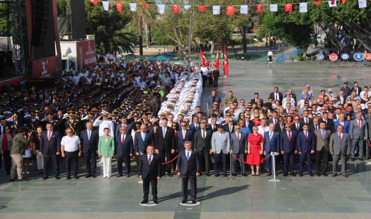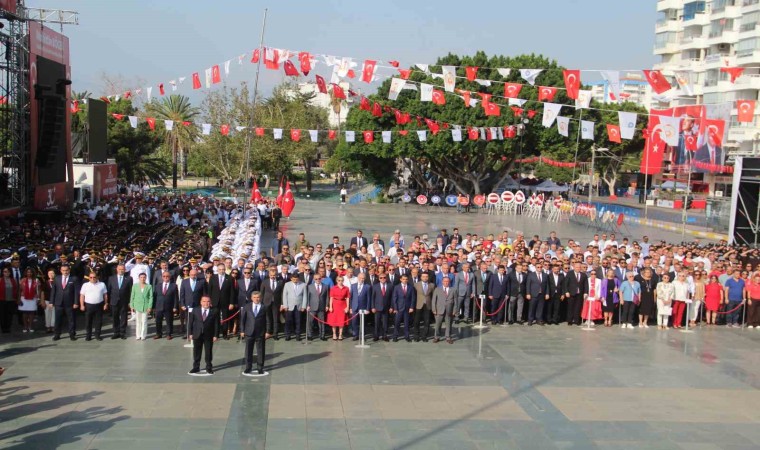 30 Ağustos Zafer Bayramı etkinlikleri çerçevesinde sabah saat 09.15’te çelenk sunma töreni gerçekleştirildi. Antalya Valisi Hulusi Şahin ve Büyükşehir Belediye Başkanı Muhittin Böcek tarafından Cumhuriyet Meydanı’ndaki Atatürk heykeline çelenkler sunuldu. Ardından valilik yerleşkesinde Vali Şahin, protokolün tebriklerini kabul etti. Daha sonra siyasi partiler ve STK’lar anıta çelenklerini bıraktı ve geçit töreni yapıldı. Vali Şahin ve Büyükşehir Belediye Başkanı Böcek, askeri araçla düzenlenen geçit töreninde katılımcıları selamladı. Şiirlerin okunduğu, halk oyunları gösterilerinin yapıldığı tören, Türk bayraklı öğrenciler, gaziler, jandarma, sahil güvenlik, polis, zabıta ekiplerinin geçiş töreniyle sona erdi. Polis helikopteri de siren eşliğinde alan üzerinde alçak uçuş yaparak geçişe eşlik etti. Sıcak ve nemli havaya rağmen vatandaşların törene ilgisi yoğun olurken, etkinlikleri bazı turistler de izledi. Piyade Üsteğmen Arif Yılmaz günün anlam ve önemini belirten konuşma yaparken, öğrenci Egemen Tahta ise şiir okudu.