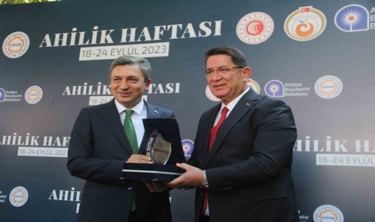 36. Ahilik Haftası etkinlikleri Sobacılar Çarşısı içerisindeki Ahi Evran Meydanı’nda düzenlenen törenle kutlandı. Kutlamaların ev sahipliğini yapan AESOB Başkanı Adlıhan Dere, ahiliğin dostluk ve kardeşlik demek olduğunu dile getirerek, “Eli açık ve konuksever insan anlamlarına da gelir. Doğruluk, dürüstlük, hoşgörü ve dayanışma gibi değerlerimizin bilgi ve birikim ile harmanlanıp sanat ve ticarette hayat bulması Ahiliktir. Yüzyıllardır bu topraklarda ticaretin ve dayanışmanın bel kemiğini oluşturan ’Ahilik’ geçmişimizin tecrübesinden faydalanarak bugünlere gelmemize vesile olan kültürel hazinelerimizden biridir. Bizler halen günümüzde Antalya esnafı olarak Ahilik düsturu ile komşusu siftah yapmadıysa ikinci müşterisini ahilik kardeşi komşu esnafa gönderecek kadar yüce gönüllü davranırken; esnaflık değil sadece para hırsı ile hareket eden binlerce şubesinde yüzlerce ürün satan 3 harfli oluşumlar esnafımızın belini bükmektedir. Binlerce şube binlerce esnafımızın kepenk kapatması ve haksız hukuksuz rekabet demektir. Esnaf sadece ticaret yapan satış yapan değil toplumun mahallenin yapı taşıdır. Bugün bizler esnafıyla, sanatkarıyla kocaman bir aile olarak bu geleneğe sahip çıkıyoruz” ifadelerine yer verdi.