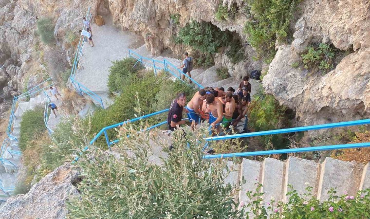 Antalya’da 40 metrelik dünyaca ünlü falezlerden denize düşen Rus kadın turist için kurtarma seferberliği dikkat çekti. İtfaiye ve tatilciler tarafından turist sedye üzerinde falezlerden yaklaşık 1 saat süren çalışmayla çıkarıldı.