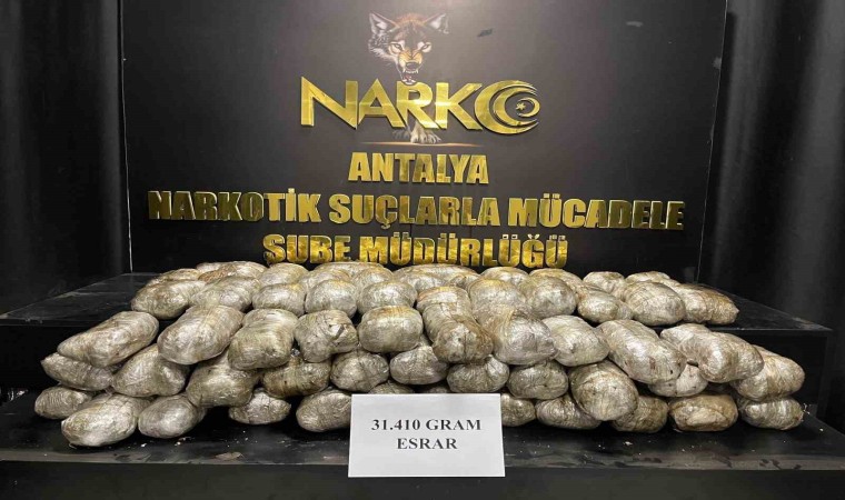 Ekipler, Antalya Şehirler Arası Otobüs Terminalinde, otogar emanet bölümüne aktarılmak istenen 7 adet araç lastiğinde yapılan aramada 59 parça paket içerisinde zulalanmış şekilde daralı 31,5 kilogram esrar maddesi ele geçirdi.