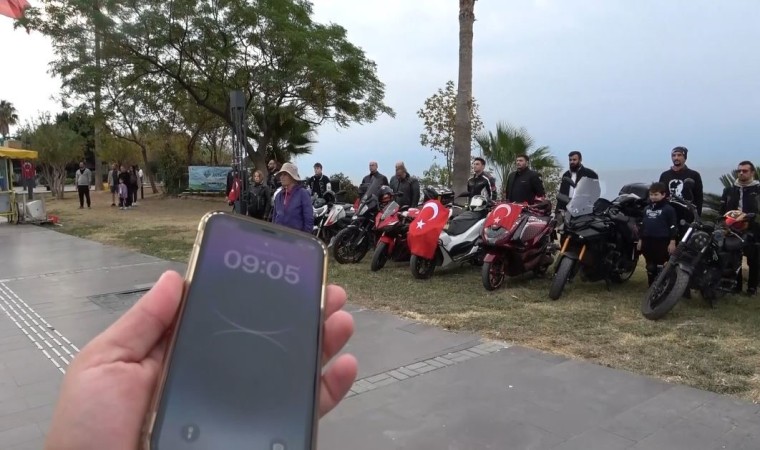 Atatürk Anıtı’na sırasıyla Antalya Valiliği, Garnizon Komutanlığı ve Antalya Büyükşehir Belediyesi’nin çelenklerinin konulmasının ardından saatler 09.05’i gösterip sirenlerin çalmasıyla seyir halindeki sürücüler araçlarını yol kenarında durdururken, bir grup motorcu Konyaaltı varyantında motorlarını durdurarak saygı duruşunda bulundu. Bir halk otobüsü sürücüsü de durarak içerisindeki yolcularla birlikte saygı duruşunda bulundu. Aynı anlarda Konyaaltı sahilinde bulunan vatandaşların yanı sıra denizde SUB yapan vatandaşlarda denizde saygı duruşunda bulundular.