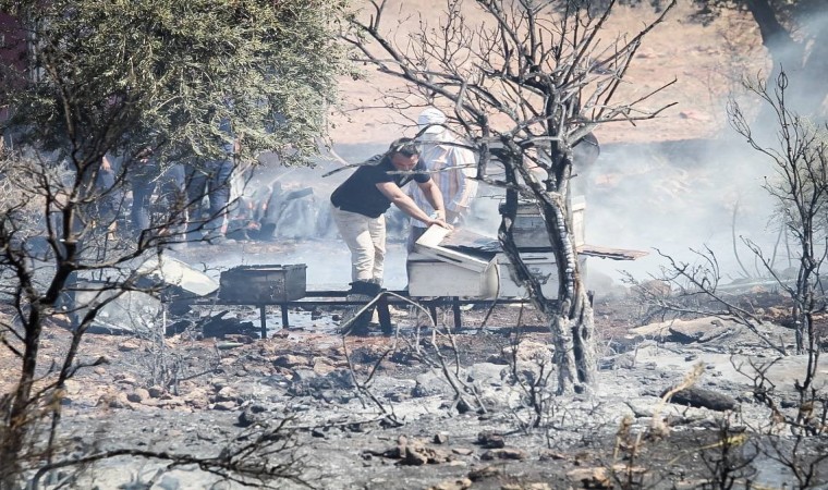 Aynı noktada ikamet eden ve söndürme çalışmalarına destek veren vatandaşlardan Celil Arı, “Burada 15-20 dönümlük bir alan var. Arılar yandı, yazık oldu. Biz evdeydik koştuk geldik, söndürme çalışmalarına yardım ettik. Seralara alevler sıçramadı ama seraların önleri yandı. İtfaiye hemen geldi ve müdahale etti. Evler yanmaktan kurtarıldı. Yangının önüne geçildi” diye konuştu.