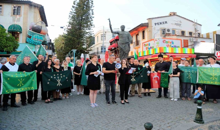 Antalya Çerkes Derneği ve dernek üyeleri, 21 Mayıs 1864 Çerkes Soykırımı ve Sürgünü Anma Günü nedeni ile Attalos Heykeli önünde basın açıklaması yaptı. Ellerinde Çerkes ve Türk bayrakları bulunan grup Çerkezce ve Türkçe olarak yaptıkları basın açıklamasında Çerkezlerin, Çarlık Rusya’sına karşı yüzyıldan fazla süren özgürlük savaşının 21 Mayıs 1864’te kesin olarak kaybedildiğini belirtti. Grup üyeleri adına konuşan Şevval Cankat, “21 Mayıs 1864’te kesin olarak kaybettik. Anavatanımız Çerkesya işgal edildi; halkımız kadın, çocuk, yaşlı demeden tarihi vatanımız Çerkesya’dan sürüldü; köylerimiz, ekinlerimiz, bahçelerimiz ateşe verildi; Çerkesya haritalardan silindi” dedi.