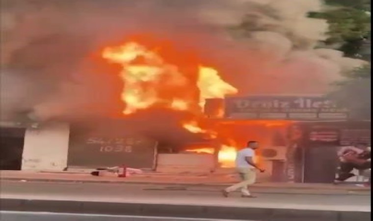 Antalya’da çıkan yangında iki iş yeri küle döndü. Yangında alev topuna dönen iş yerine girip malzemeleri kurtarmak için canını tehlikeye atan kişi dikkatlerden kaçmadı.