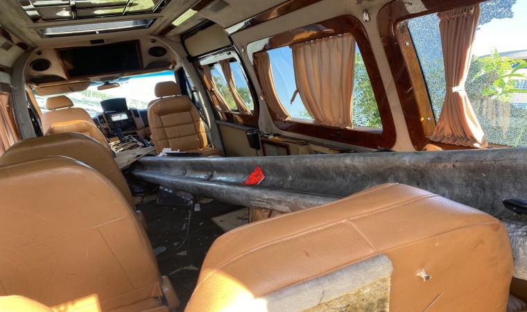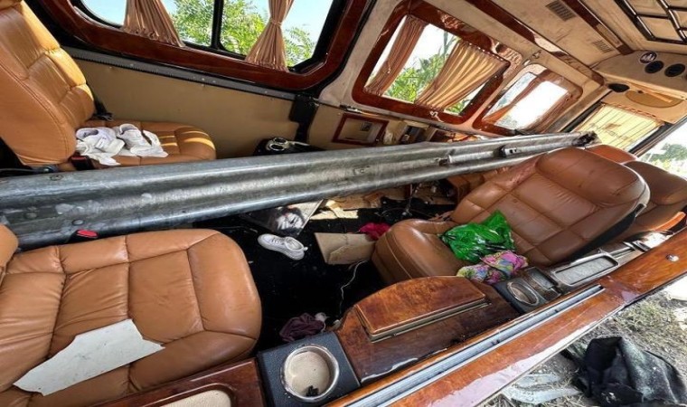 Antalya’nın Aksu ilçesinde meydana gelen trafik kazasında yol kenarında bulunan ve tur minibüsüne ok gibi saplanan bariyer, minibüsün içerisinden geçti. Dehşete düşüren kazada 3 kişi yaralandı.