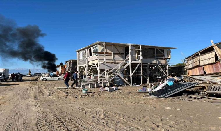 Geçtiğimiz hafta çardakta yaşayanların yıkım çalışmalarını engellemek amacıyla gösterdikleri mücadeleye karşı, bu kez çok sayıda çevik kuvvet ekipleri alanda yerini aldı. Aksu Belediyesi ekipleri vinçlerle çardakların yıkımını gerçekleştirirken, yıkım ekiplerine tepki gösteren bir çardak sahibi çardağını ateşe verdi, o anlar cep telefonu kamerasına anbean yansıdı.
