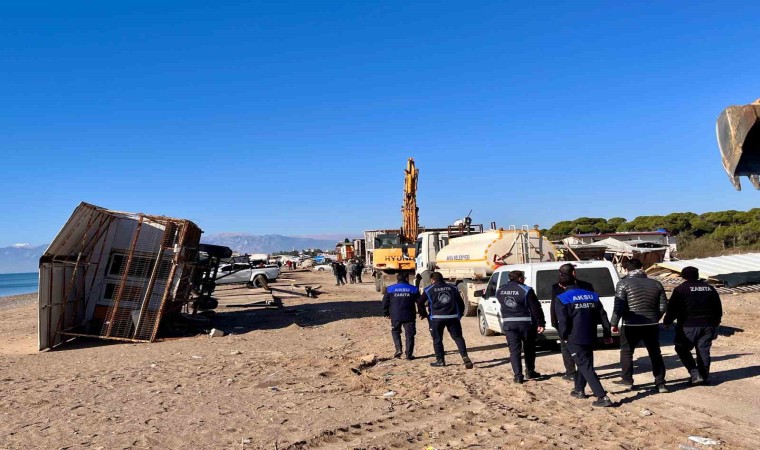 Antalya’nın Aksu ilçesinde deniz kaplumbağalarının yuvalama alanı olan Kumköy Sahili’nde kurulan ve 2021 yılından bu yana yıkımı yılan hikayesine dönen çardaklar, Aksu Belediyesi tarafından yıkıldı. Bölgede bulunan 700 çardağın yıkımının tamamlanması ve alanın temizlenmesinin ardından, plaj halkın kullanımına açılacak. Denize sıfır sahilde yıllardır konaklayan vatandaşlar ise yıkımın bugün yapılacağından habersiz olduklarını öne sürerek, “Çocukluğumuzdan beri sahil kenarındayız, çok anımız vardı. Anı da kalmadı, bir şey de kalmadı” dedi.