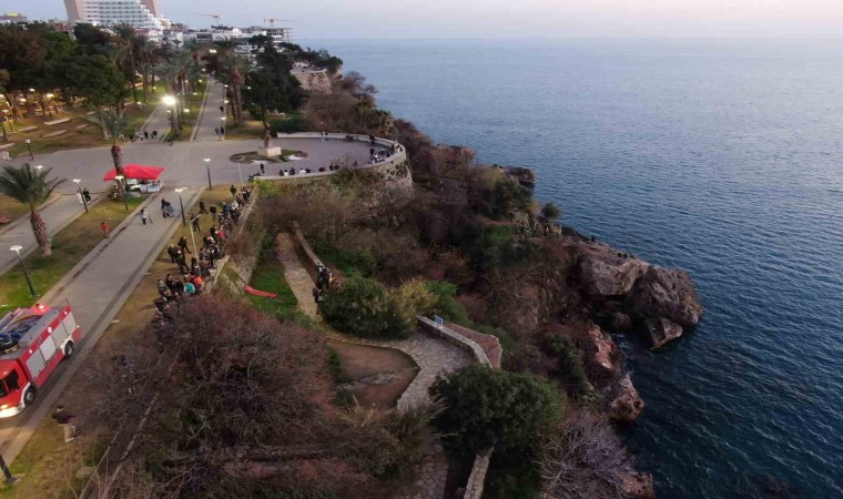 Antalya’da düştüğü 30 metre yüksekliğindeki falezlerin orta bölümündeki kayalık alanda mahsur kalan şahıs kurtarıldı.