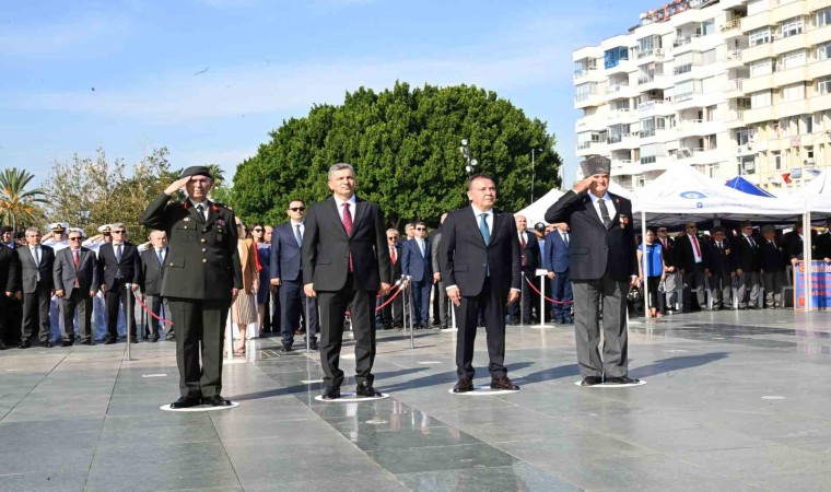 Cumhuriyet Meydanı’nda düzenlenen Çelenk Sunma Törenine Antalya Valisi Hulusi Şahin, Antalya Garnizon Komutanı Tuğgeneral Hasan Basri Erkuzu, Antalya Büyükşehir Belediye Başkanı Muhittin Böcek, Cumhuriyet Başsavcısı Yakup Ali Kahveci, İl Emniyet Müdürü İlker Arslan, İl Jandarma Komutanı Tuğgeneral Tarık Hekimoğlu, Akdeniz Üniversitesi Rektörü Özlenen Özkan, Türkiye Muharip Gaziler Derneği Antalya Şube Başkanı Emekli Albay Zeynel Abidin Sezer, sivil toplum kuruluşu temsilcileri, gaziler ve vatandaşlar katıldı.
