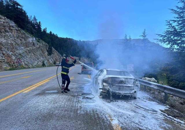 Olay, dün saat 18.00 sıralarında Akseki - Seydişehir karayolu Alacabel mevkiinde meydana geldi. Edinilen bilgiye göre, Mehmet Sağlam idaresindeki 07 K 0070 plakalı hususi otomobil Akseki yönünden Seydişehir yönüne seyir halindeyken yanmaya başladı. Motor bölümünden alevlerin yükselmesi üzerine sürücü M.S araçtan inerek durumu 112 acil durum merkezine haber verdi. Antalya Büyükşehir Belediyesi Akseki birimine bağlı itfaiye ekipleri kısa sürede olay yerine gelerek yanan araca müdahale etti.