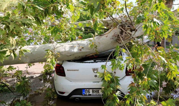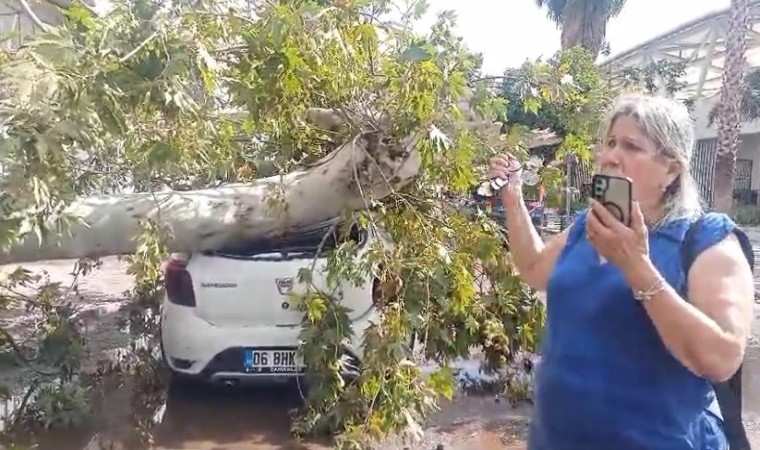 Bir başka otomobilin sahibi Duygu Kumbul da, ”Kuzenimle gezmeye geldik. Aracımı park edip misafirliğe gittik. Sonra bir anda fırtına çıktı. Aracımın yanına geldiğimde üzerine ağacın devrildiğini gördüm. Ağacın içi resmen boş. Doğal bir afet ama çok üzgünüm” diye konuştu.