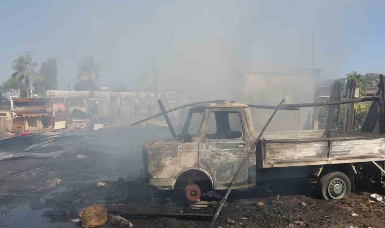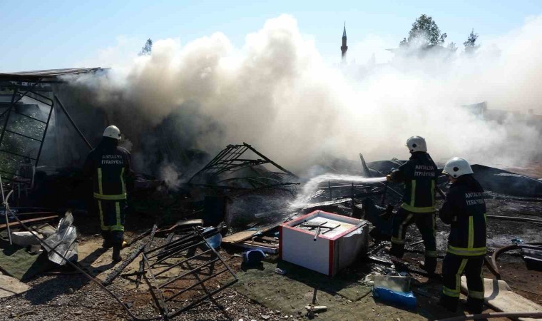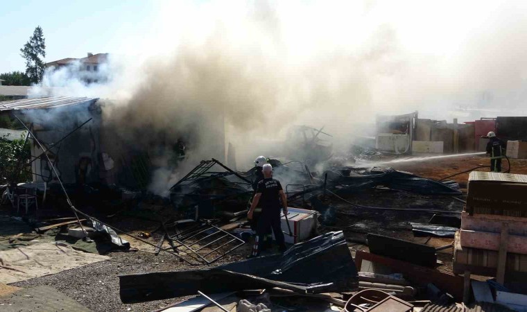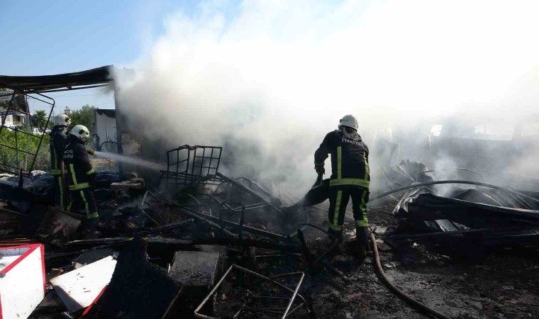 Antalya’nın Kepez ilçesinde ikinci el mobilya eşyaları satılan bir konteynerde çıkan yangında çok sayıda mobilya ve bir kamyonet alev alev yanarak küle döndü.