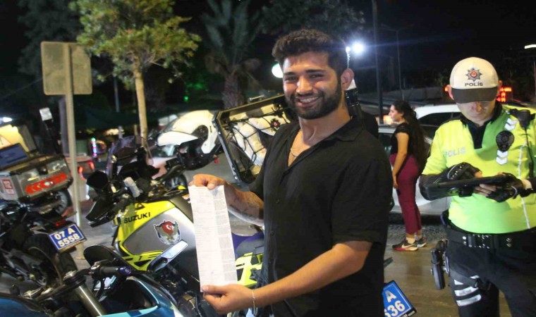Kasksız bir şekilde çocuklarıyla motosiklete binen yabancı uyruklu Natali’ye de denetimde cezai işlem uygulandı. Denetimde ‘kask takmamak’ suçundan toplamda 690 Lira cezai işlem uygulanan Natali, polis ekiplerine “Sadece bana ceza yazdınız, iptal edemez misiniz?” sorusuna karşılık alamayınca çocuklarının üzüldüğünü gören bir polis memuru, çocuklara düdük hediye ederek, “Annenizin ve babanızın kurallara uymadığını gördüğünüzde bu düdüğü çalın” sözleriyle mutlu oldu. Düdük hediyesini gören Natali’nin, “Bana da kask hediye edin, rengi kırmızı olursa çok mutlu olurum” sözleri ise ekiplere tebessüm ettirdi.