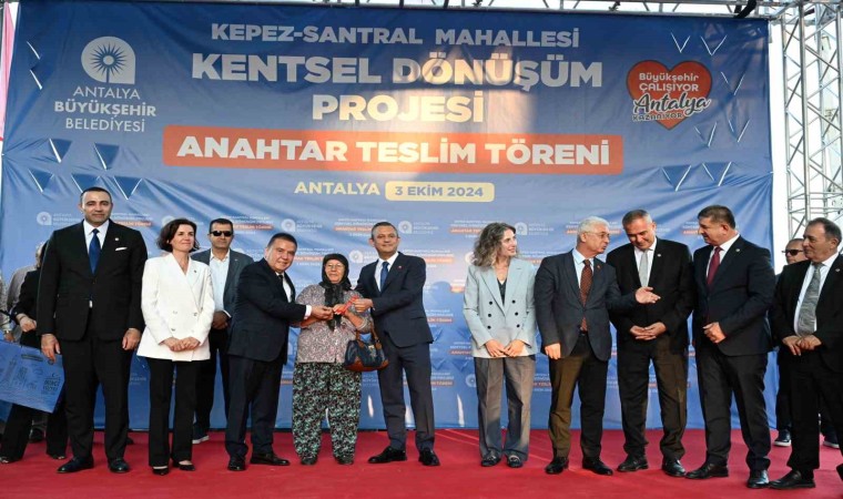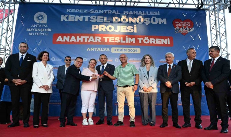 Kepez Santral Mahallesi Kentsel Dönüşüm Projesi anahtar teslim töreni, CHP Genel Başkanı Özgür Özel, Antalya Büyükşehir Belediye Başkanı Muhittin Böcek, CHP Antalya Milletvekilleri ve mahalle sakinlerinin katılımıyla gerçekleştirildi. Son kalan bin 82 hak sahibine anahtarları yıl sonuna kadar teslim edilecek.