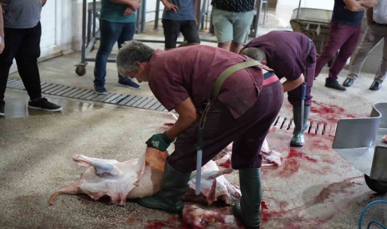Serik’te Halk Eğitim Merkezi Müdürlüğü tarafından düzenlenen etkinlikte, vatandaşlara kurban kesim eğitimi verildi. Veteriner hekim Şerafettin Şahin, "Antalya Büyükşehir Belediyesi veteriner hekim görevlisiyim. İlçe tarıma bağlı olarak çalışmaktayız. Burada kursiyerlerimize pratik amaçlı küçükbaş hayvan kesiminde büyükbaş hayvan kesimi hakkında uygulamalı eğitim yapmaktayız. İnşallah bu kursiyerlerimiz için yararlı olmuştur ve amacına ulaşmıştır. Her yıl Halk Eğitim Müdürlüğümüz tarafından açılan kurslardadır. Uygulamalı eğitimi mezbahamızda vermekteyiz. Daha sonra hak eden kursiyerlerimiz sertifikalarını veriyoruz. Hayatlarında bunu uygulamaları için kendilerine yardımcı olmaya çalışıyoruz" dedi.