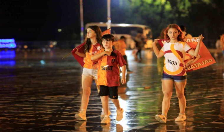 Galatasaray, Konyaspor deplasmanında sahadan galibiyetle ayrılarak şampiyonluğunu ilan ederken Antalya’da binlerce taraftar bitiş düdüğü ile birlikte sokaklara döküldü. Sarı-kırmızılı taraftarların kutlamasına yer yer serpiştiren yağmur da engel olamadı. Fenerbahçeli bazı taraftarlar, formalarıyla kutlamalara katılırken gecenin en anlamlı görüntüsü ise Fenerbahçeli bir taraftarın omzunda çocuğu ve Fenerbahçe formasıyla Galatasaraylı taraftarların sevincine ortak olup ‘hepimiz kardeşiz, hepimiz Türk’üz’ demesi oldu.