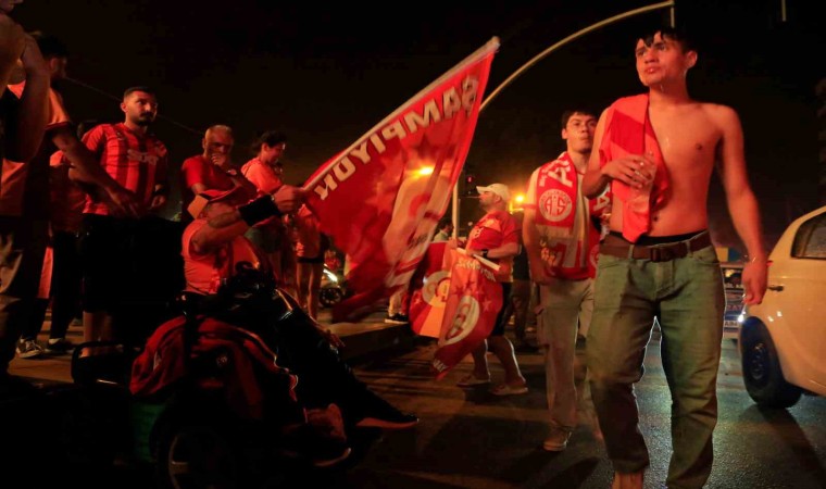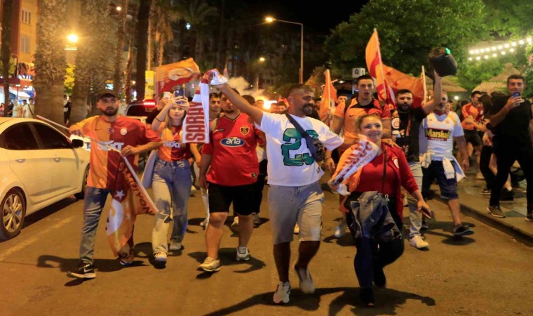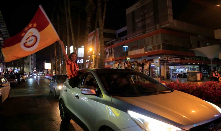Galatasaray, Konyaspor deplasmanında galibiyetle ayrılarak şampiyonluğunu ilan ederken Antalya’da binlerce taraftar bitiş düdüğü ile birlikte sokaklara döküldü.
