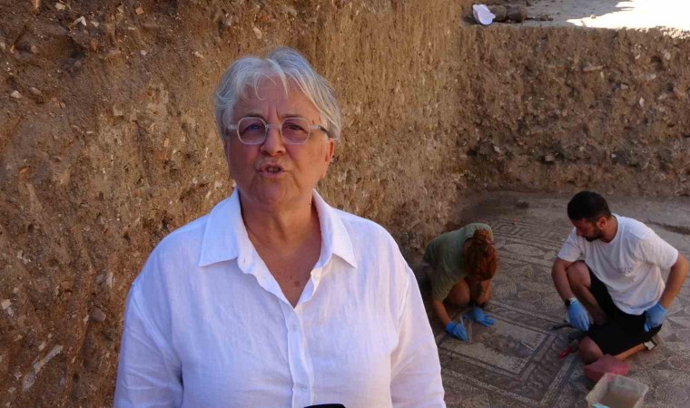 Prof. Dr. Alanyalı, şu ifadelere yer verdi: “Restorasyon çalışmaları kapsamında, anıtsal çeşmenin beden duvarını belgelemek, duvarı statik açıdan değerlendirebilmek ve çeşmenin 3. katına ait eksik mimari elemanların tespitine yönelik olarak, anıtsal çeşmenin beden duvarının hemen önünde kazı çalışmaları başlatıldı. Kazı çalışmaları sırasında anıtsal çeşmenin arkasında, çeşme beden duvarının hemen önünde, çeşmeye su getiren bir su kemerinin açığa çıkarılması önemli bir tespit oldu. Su kemerinin tespiti ile alanda kazılar doğuya doğru genişletildi ve kemerlerin hemen önünde oldukça büyük, zemini mozaikle döşeli mekânlar açığa çıkarılmaya başlandı. Mozaik zeminin ortasında bir panel içinde şairlere ilham veren, epik şiirin esin perisi Kalliope, üstünde ismi de yazılı halde betimlendi. Kalliope’nin betimlendiği bu mekânın duvarları da oldukça özenli fresklerle süslü ancak, fresklerde sadece yer yer boya izleri korunabilmiştir.”