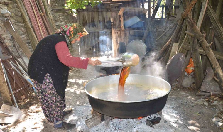 İbradı’nın Ormana mahallesinde annesinde pekmez yapan Naime İnan, Ormana’nın kendine has üzüm bağlarının bulunduğunu ve üzümünün meşhur olduğunu söyledi. Üzümün şırasını bakır tavalarda kızgın ateşte 4-5 saat kaynatıldığını ve pekmez köpürünce pekmezin kıvamına geldiğini söyleyen İnan, “Çok zahmetli bir iş. Pekmez kaynamaya başlayınca kesinlikle başından ayrılamıyorsun. Kızgın ateşte kaynadığı için taşma riski vardır. Pekmez kıvamına gelince tavaları indiririz” dedi.