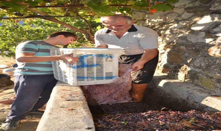 Şarahmana ismi verilen meşe ağacından yapılmış havuzda saatlerce süren ezme işleminin ardından ezilen üzüm sularını kazanlara aktardıklarını belirten Karakaş, “Elde ettiğimiz üzüm sularını kazanlara koyarız. Üzüm sularının içerisine döktüğümüz meşe külünü karıştırarak 4-5 saat kaynatıyoruz. Kaynatılan şıralar ise kazanın içerisinde sabaha kadar bekletiyoruz. Sabah ise temiz şıra haline geliyor. Daha sonra ise süzerek tavaya döküyoruz. Tavada kızgın ateşte 5-6 saat dumansız odun ile kaynatıyoruz. Bu süreç içerisinde pekmez haline geliyor ve sofralık pekmez haline getiriliyor. Tabİi ki bu oldukça meşakkatli bir iş. Üzümü pekmez haline getirmek için 3 gün emek veriyorsunuz. Çalışmak ve üretmek çok güzel bir şey. Üretmediğimiz sürece büyümeyi, refahı ve güzel yaşamayı asla hayal bile edemeyiz” şeklinde konuştu.