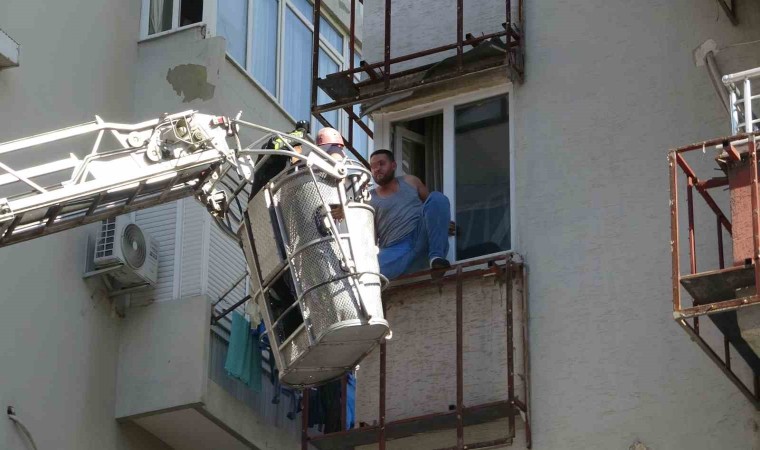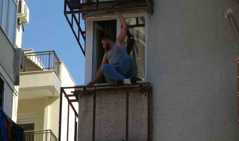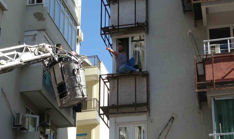 Antalya’da sabah saatlerinde bir apartmanın 2’nci katında pencereye tutunup tehlikeli hareketler yapan şahıs çevrede paniğe neden oldu. Kalabalığın meraklı bakışları altında itfaiye sepetiyle güvenli bir şekilde indirilen F.Y., ifadesi alınmak üzere polis merkezine götürüldü.