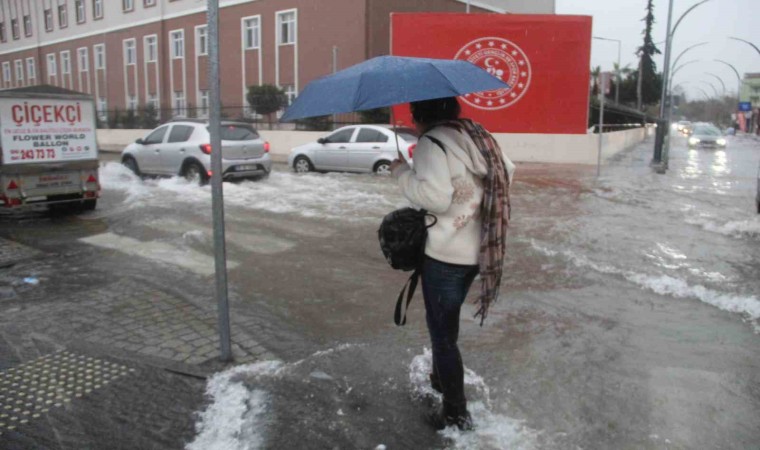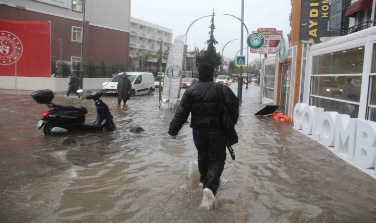 Meteoroloji Genel Müdürlüğünün turuncu kodla uyardığı turizm kenti Antalya’da sağanak yağış öğleden sonra etkisini göstermeye başladı. Aniden bastıran sağanak yağış özellikle Kepez ilçesinde etkili oldu. Araçlar güçlükle ilerledi cadde sokaklar göle döndü. Akşam trafiğiyle birlikte trafik nazı caddelerde neredeyse durma noktasına geldi. Özellikle Kültür Mahallesi Kafeler Caddesi su altında kaldı. Caddeyi boydan boya kaplayan sudan araçlar güçlükle ilerledi. Yoldan akan sular dereyi andırdı. Vatandaşlar sular altında kalan kaldırım ve yoldan geçemeyince çareyi dalarak geçmekte buldu. Bisiklet, motosikletlilerin suda ilerlerken büyük zorluk yaşadı. Bir gencin ise su altındaki kaldırımdan elektrikli scooterle ilerlediği görüldü. Kavşakların kesişme noktasında rögarın patlaması ve tahliye kanalının suyu çekmemesi nedeniyle bir iş yeri su basma tehlikesiyle karşı karşıya kaldı. İşletme sahipleri kapının önüne kum torbalarıyla önlem aldı, yoldan geçen araçların yavaş geçmesi noktasında sürücüleri sık sık uyardı. İşletme sahibinin, uyarılarına rağmen bazı sürücülerin hızlı gitmeye devam etti.