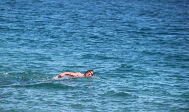 Turizm kenti Antalya’da sahillerdeki yoğunluk yaz gününü aratmadı.