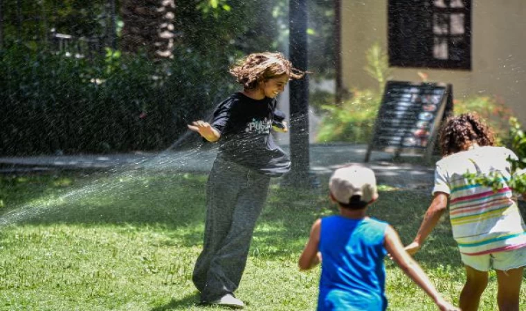 Tolga YILDIRIM-Semih ERSÖZLER/ANTALYA, (DHA)- HAVA sıcaklığının 40,5 derece ölçüldüğü Antalya'da yeşil alanların sulandığı fıskiyeler turistlerin ve çocukların serinleme alanı oldu.