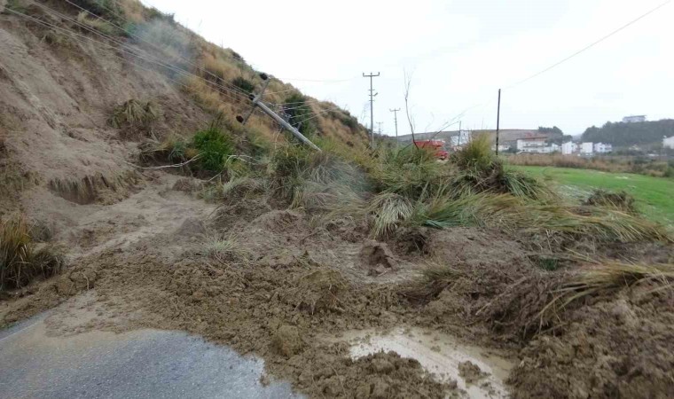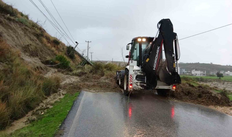 Manavgat’ta dün akşamdan bu yana etkili olan şiddetli yağış nedeniyle Karaöz ve Aksaz Mahallelerini birbirine bağlayan yol üzerinde heyelan meydana geldi. Karaöz Mahallesi girişi tamamen kapanırken, araçlar yolun açılmasını bekledi. Heyelan anında yoldan herhangi bir aracın geçmemesi muhtemel can kaybı ve yaralanmayı önledi. Antalya Büyükşehir Belediyesine ait iş makineleri yoldaki toprağı kaldırarak yolu açtı. AKEDAŞ ekipleri de yol devrilen yüksek gerilim hattı direğini yoldan kaldırdı. Toprak ve elektrik direğinin kaldırılmasının ardından yol araç trafiğine açıldı.