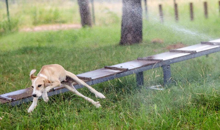 Merkezde ulunan köpek kafesleri de yönetmeliklere uygun olarak havalandırma sistemleri ile donatılmış durumda. Açık alanların üst bölümlerine çekilen tenteler sayesinde köpekler, güneşin olumsuz etkilerinden korunuyor. Yeşil alanlara çıkarılan köpekler, çim sulama fıskiyeleri açılarak serinletiliyor.