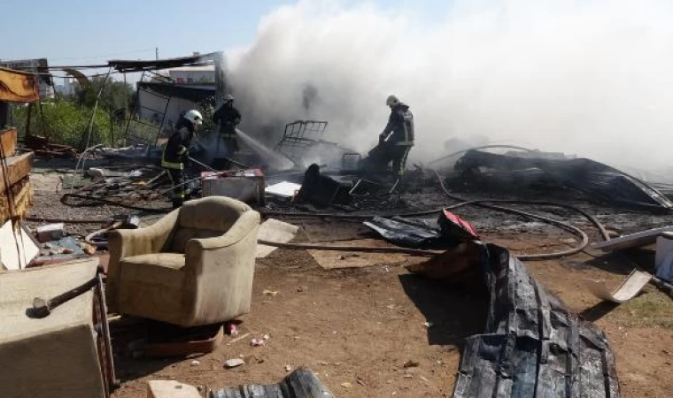 Adem AKALAN/ANTALYA, (DHA)- ANTALYA'da evsel eşya satılan spot mağazada çıkan yangında, ikinci el mobilyalar, iş yeri arazisi içerisindeki konteyner ile kamyonet yandı.
