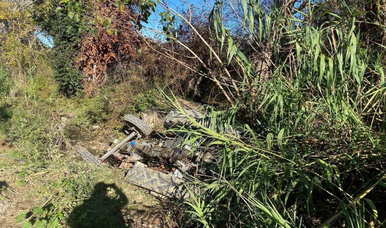 Antalya’nın Serik ilçesinde, şarampole yuvarlanan traktörün altında kalan sürücü yaralandı.