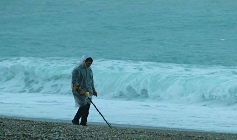 Antalya’da Meteoroloji’nin turuncu kodlu uyarılarının ardından gelen yağış ile fırtına sonrası sahaya çıkan define avcıları, bu sefer de yanıltmadı. Dünden bu yana etkili olan sağanak ve şiddetli rüzgar sonrası dünyaca ünlü sahile gelen 3 define avcısı, sahilde değerli eşya ve madeni para aradı.