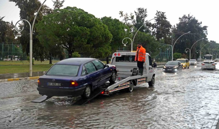 Meteoroloji Genel Müdürlüğü’nün bugün için turuncu kodla uyardığı Antalya’nın doğu ilçelerinden Serik’te, gece saatlerinde başlayan ve aralıksız süren yağış, ilçede hayatı adete felç etti. Serik’in ünlü turizm merkezlerinden Belek’te yağış sonrası yollar göle döndü, arızalanan araçlar yollarda mahsur kaldı. Araçlar çekici vasıtasıyla bulundukları noktalardan alınırken, diğer araç sürücüleri ise su dolu caddelerde ilerlemekte güçlük çekti.