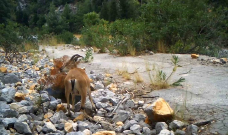 Doğa Koruma ve Milli Parklar 6. Bölge Antalya Şube Müdürlüğü Akseki Şefliği tarafından yaban hayvanlarını izleme çalışmaları devam ediyor. Şeflik tarafından arazilerin farklı bölgelerine yerleştirilen suluklar fotokapan ile takip ediliyor. Antalya DKMP tarafından yayınlanan görüntülerde de yol kenarına bırakılan suluklardan su içmeye gelen anne ve iki yavru yaban keçisinin fotokapan görüntüleri paylaşıldı.