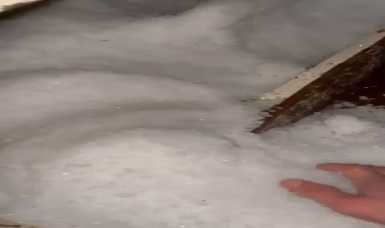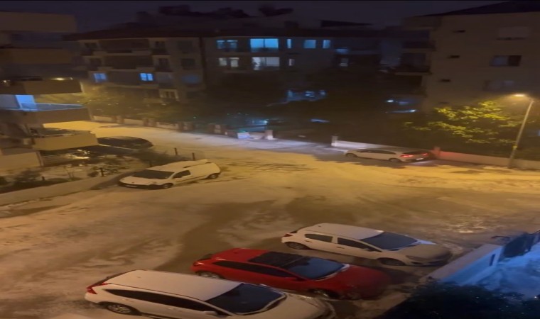Antalya’nın Konyaaltı ilçesinde akşam saatlerinde etkili olan dolu yağışı, sokakları beyaza bürüdü.