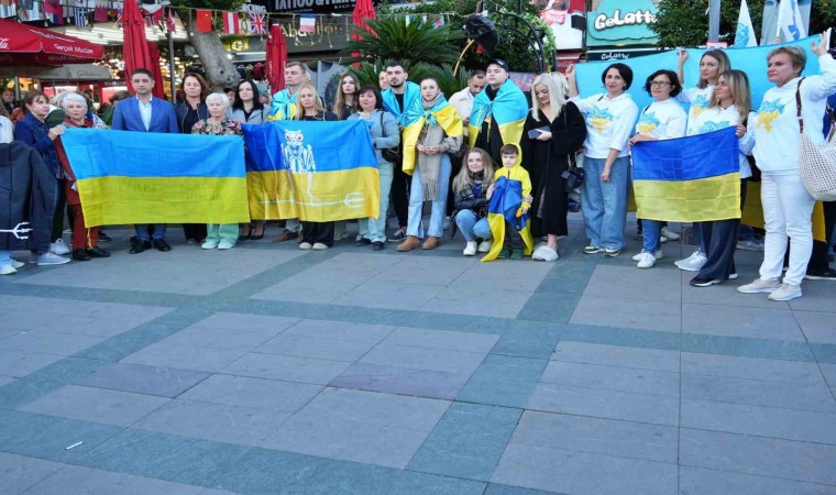 Antalya’da yaşayan Ukraynalılar, Ukrayna-Rusya savaşının bininci günüde Attalos Heykeli önünde basın açıklaması yaptı. Basın açıklaması sırasında çok sayıda Ukraynalı, bayraklarına bürünmüş halde alanda hazır bulundu.