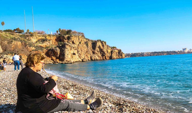 Antalya’da yaşayan Menekşe Türk ise sahile gelerek torununa kazak ördü. Antalya’da yaşamaktan mutlu olduğunu ifade eden Türk, “Herkes yüzüyor, hava çok güzel. Deniz pırıl pırıl, dağlarda kar var. Hava o kadar güzel ki; Antalya’nın kışı yok. Akşamları sadece kısa bir klima açıyoruz, İstanbul mesela soğuk. Burada oturmak çok güzel” dedi.