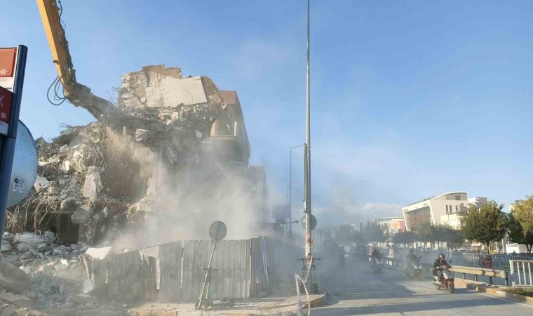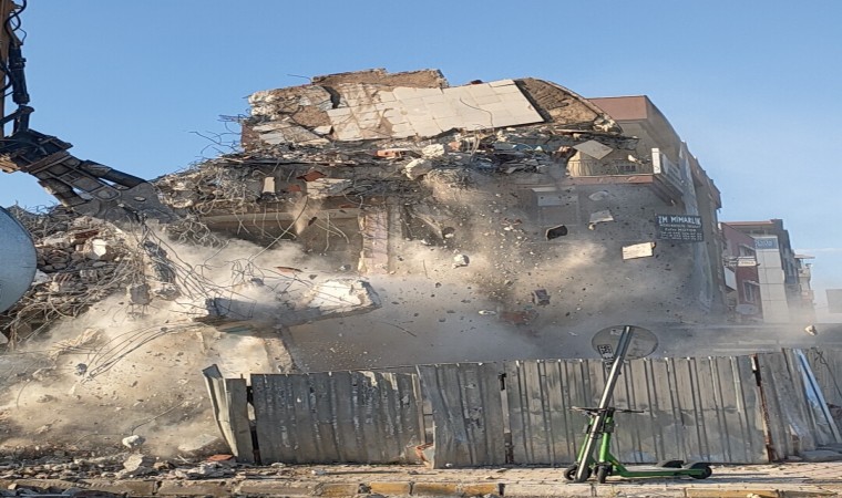 Bir süre sonra iş makinesinin kolonları kırması sonucu bina kontrollü bir şekilde yıkılmaya devam etti.