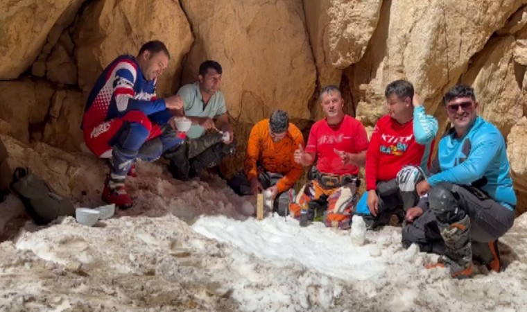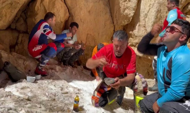 3024 rakımlı Akdağ’ın eteklerinde bulunan obruklarda kardan şerbet yaparak hem serinlediler hem de oyun havası eşliğinde eğlendiler.