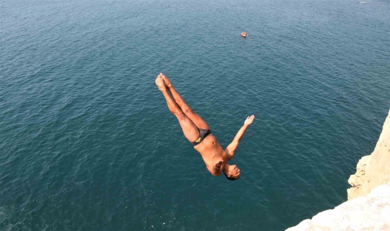 Antalya’da İran eski Milli Dalış Takım üyesi ve 3 bronz madalya sahibi Fayaz Mirabian, havada ters takla atarak dünyaca ünlü falezlerde 25 metreden denize atladı. Mirabian’ın saniyeler içerisinde denizle buluştuğu anlar büyük takdir topladı. O anlar İHA kamerası tarafından kaydedildi.