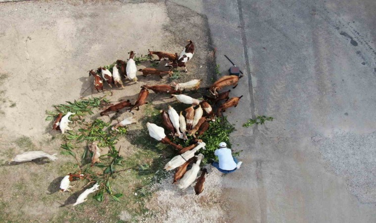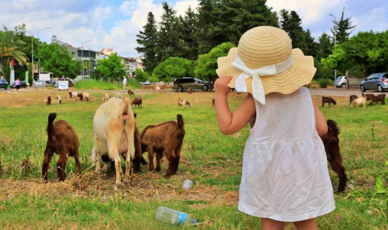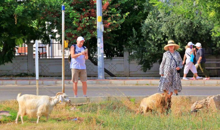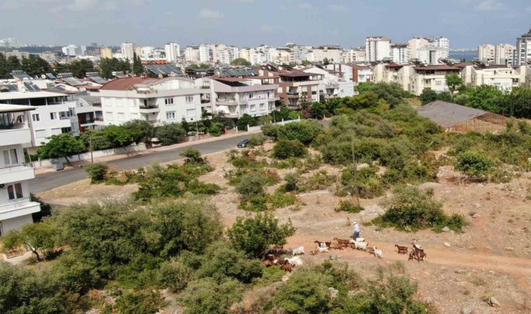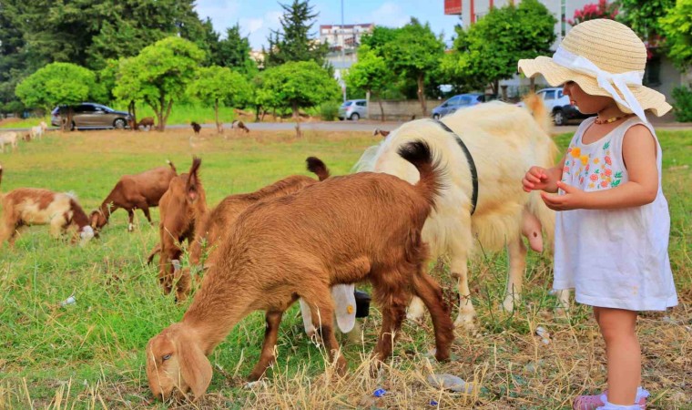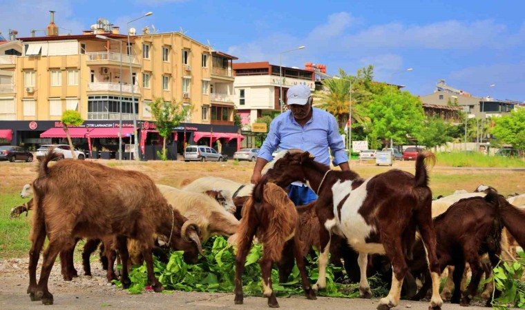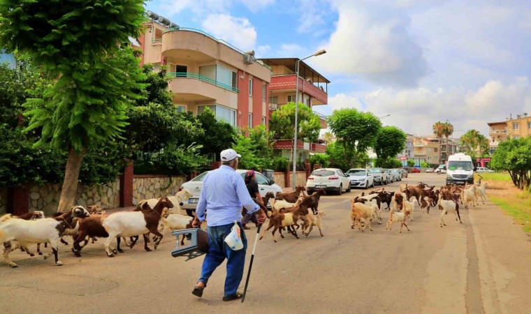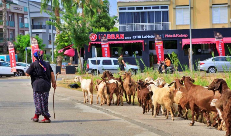 Antalyalı karı-koca, Konyaaltı Sahili’ne 500 metre mesafede lüks villa ve apartmanların arasında keçilerini güdüyor. Bölgede yaşayan turistler ile kente tatil amacıyla gelen vatandaşların şaşkın bakışları arasında sürüyü otlatan çoban ve eşi keçileri isim isim çağırarak yönlendiriyor.