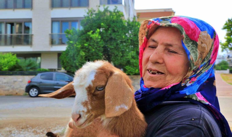Konyaaltı Yarbaşçandır köyünde doğduğunu ve çocukluğundan buyana hayvancılık ile uğraştığını, vazgeçemediğini belirten Menşure Albayram, “Öncesinde annem-babam vardı, evlendikten sonra eşimle birlikte devam ediyoruz. Beni anneleri gibi görüyorlar. İsimleri bile var, Hazal, Alev, Cesur Yaman Ali, Damla, Güneş hepsinin bir ismi var. Cesur’un annesinin sütü olmadı. Başka annelerden sağarak biberonla besledim. Yem ve yeşillik yemeye başlayana kadar. Versem yine koşa koşa gelir çocuk gibi biberonu alır. Çok sevimliler. Evin arka tarafında bir boşluk var ormanlık alan yerden çıkan bir pınarda var oraya götürüyorum her gün otlatmaya, birde bu taraflara getiriyoruz. Binaların arasından ara yollardan, karşıya geçecek olursak eşimle birlikte trafiğin azalmasını bekleyip, hep beraber geçiriyoruz” dedi.