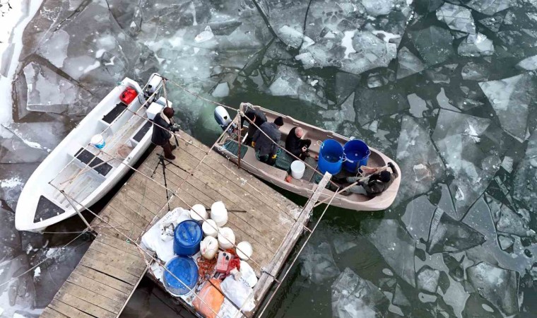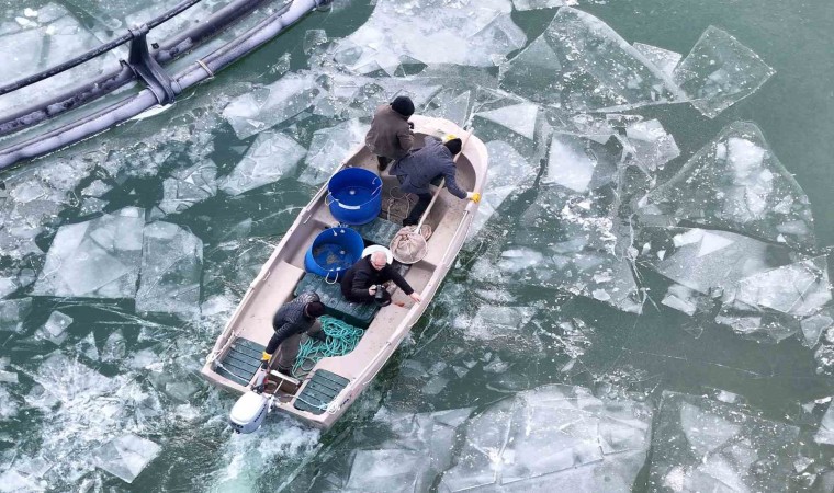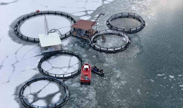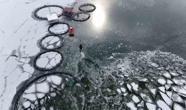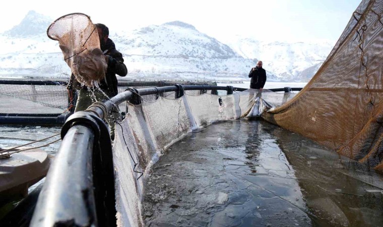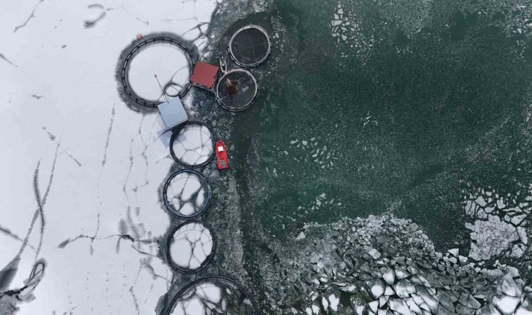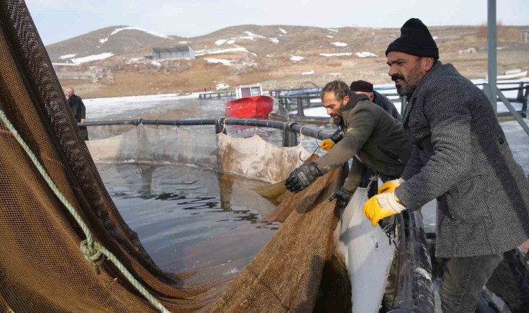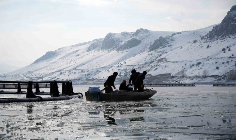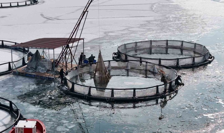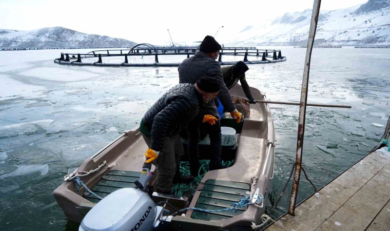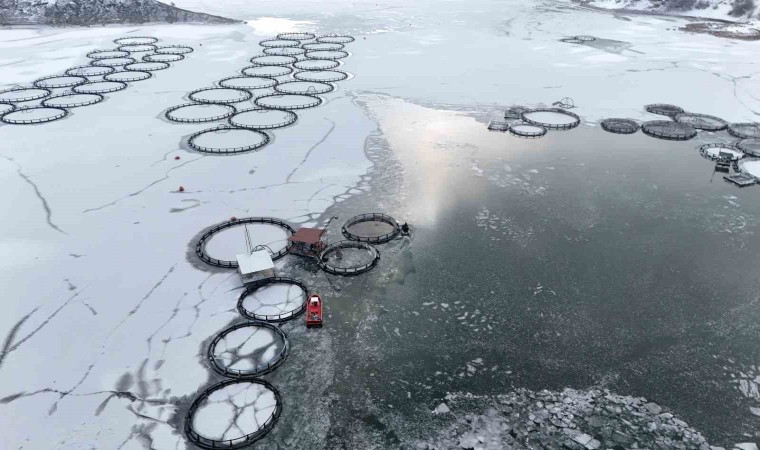Baraj gölünde balıkçıların kafeslerden yaptıkları balık hasadı belgeselleri aratmadı. Buzla kaplı gölde buzları kırıp, tehlikeye adeta meydana okuyarak balıkçı tekneleriyle kafeslere ulaşabilen balıkçılar bin bir güçlükle ağları kafeslere indirip balık hasadını yaptılar.