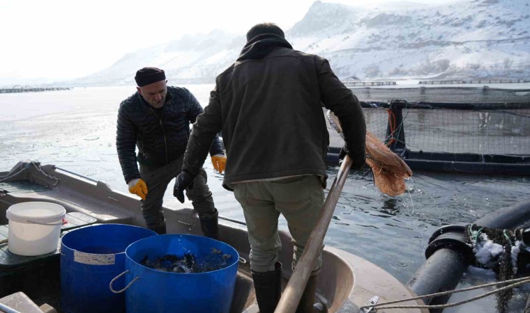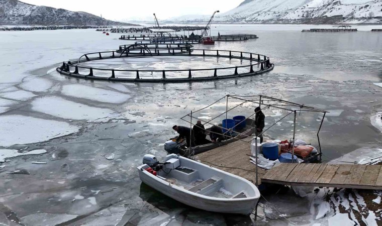 Balıkçılardan Şükrü Adam buz tutan gölde kafeslerden balık hasadını oldukça zor şartlar altında yapabildiklerini ifade ederek, “Bu sene aşırı soğuk var. Göl tamamen buz tuttu, balık kafeslerimiz de buz altına kaldı. Buzları kırarak tekneyle kafeslere varıp balıkları ağlarla çıkarıyoruz. Antarktika değil Erzincan burası. Buradan çıkardığımız balıkları Erzincan, Elazığ, Trabzon’a gönderiyoruz. Erzincan’da deniz yok ama iyi balık çıkarıyoruz” dedi.